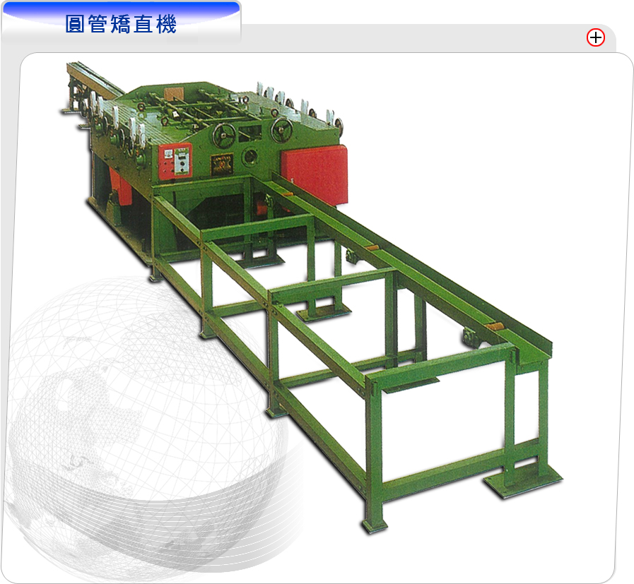 | 本機設計乃針對製管機調適不當所產生的彎曲管及工業用管徑正常化處理所產生的彎曲及鋼管經抽伸產生的彎曲做直度的調整。可將試機的次級品經本機的調直成為正常品﹐提高經濟效益。 |